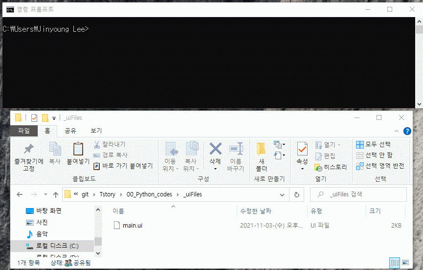- 2. ui 파일 py 파일로 변환 (cmd를 사용한 변환)