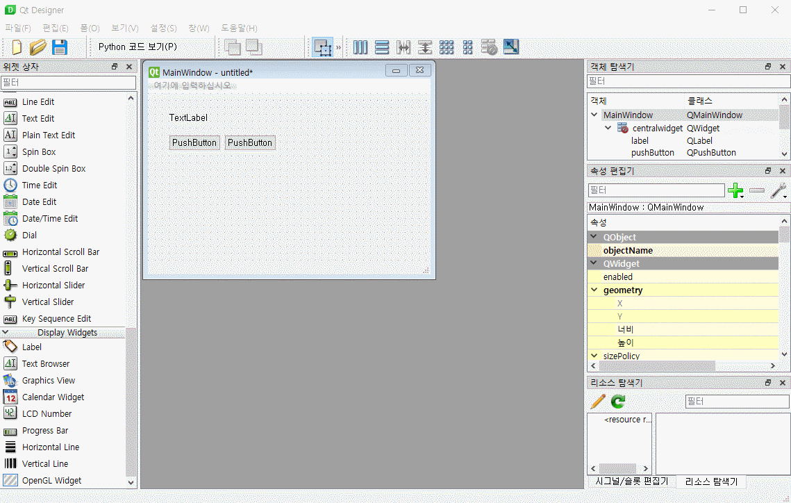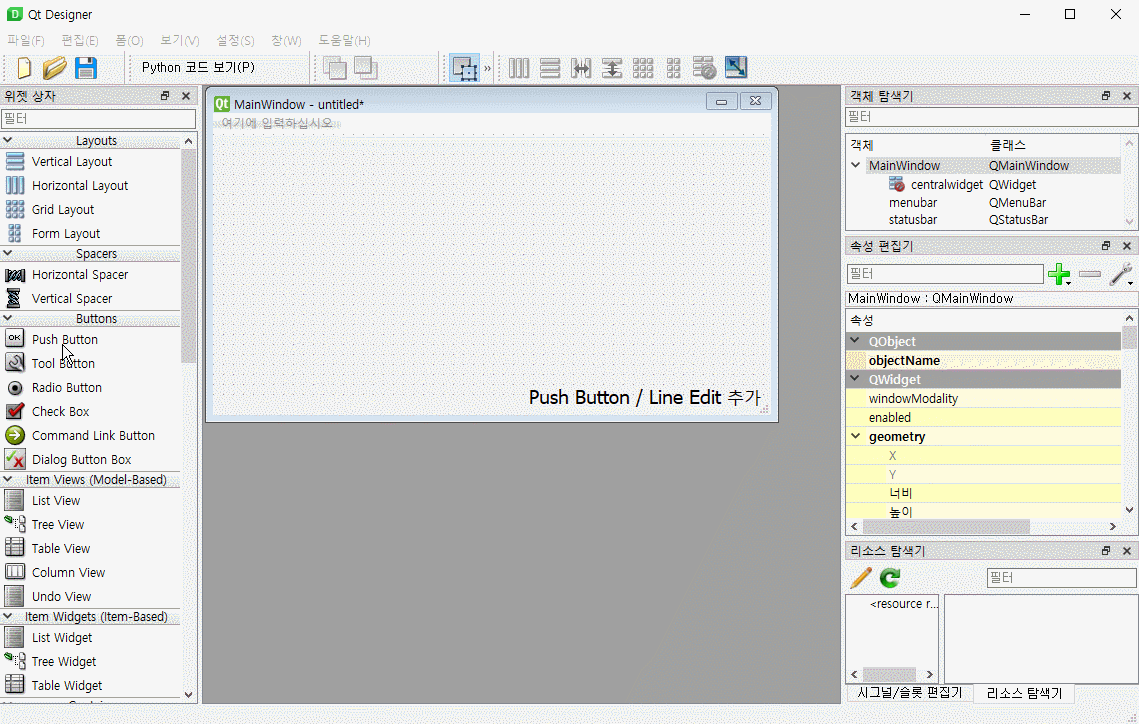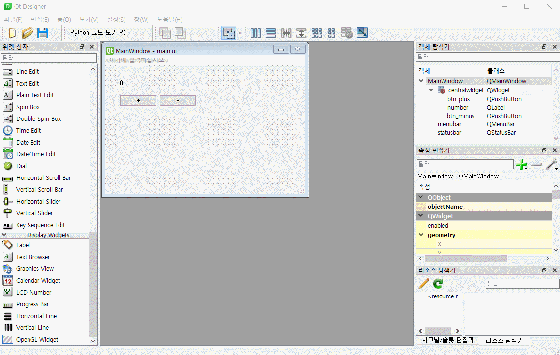 1. Qt Designer로 간단한 GUI 만들기