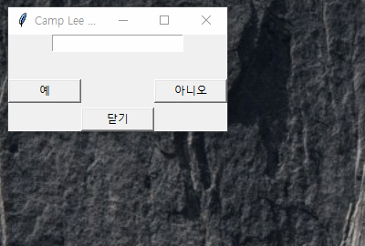 btn1 = tk.Button(root, text="예", width=10)